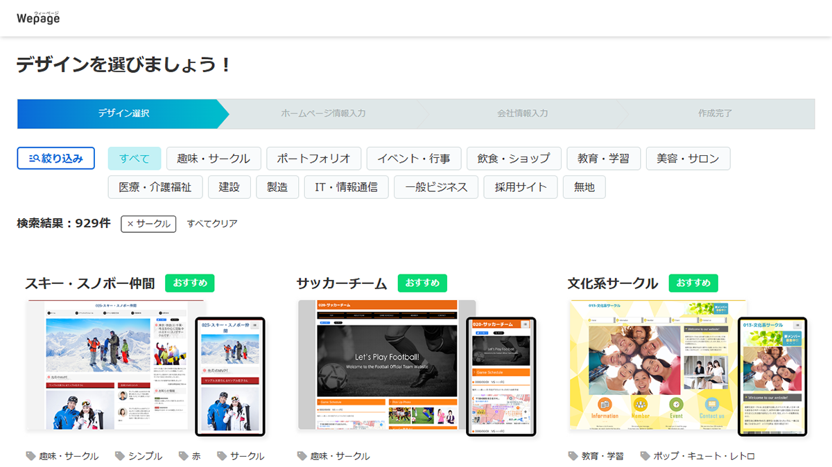 ちなみにWepageでは、約2万種類のデザインテンプレートがあるので、オリジナリティが出しやすいよう設計されています。
