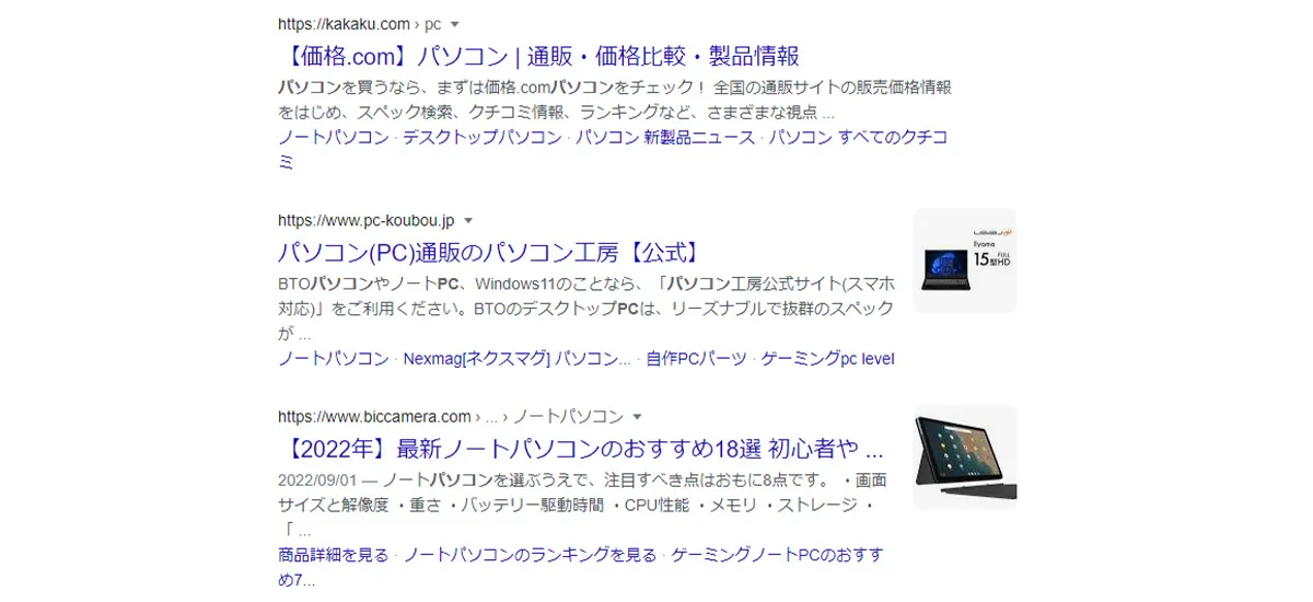 また、認識・評価されたとしても必ず検索結果上位に表示されるわけではありません。