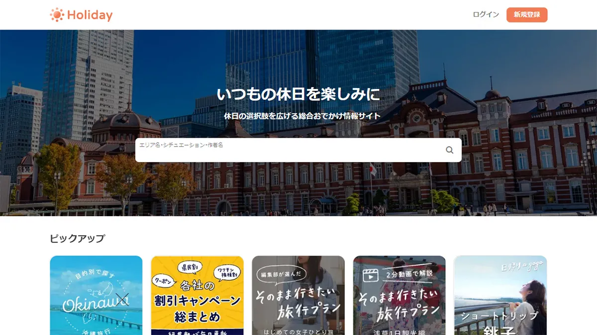 「いつもの休日を楽しみに」をコンセプトにした総合おでかけ情報サイトがHolidayです。