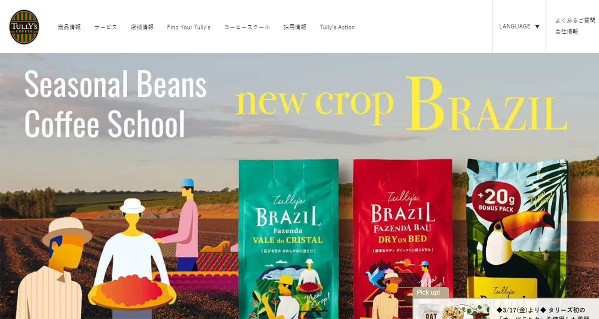 また、タリーズを好きになってもらえるよう、タリーズの楽しみ方というコンテンツを設置しているのも特徴的です。
