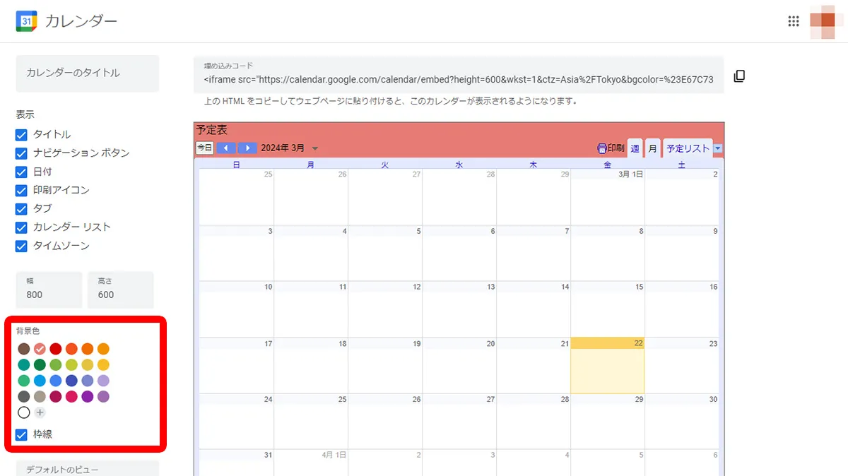 カレンダーを埋め込む前に、見た目をカスタマイズしましょう。